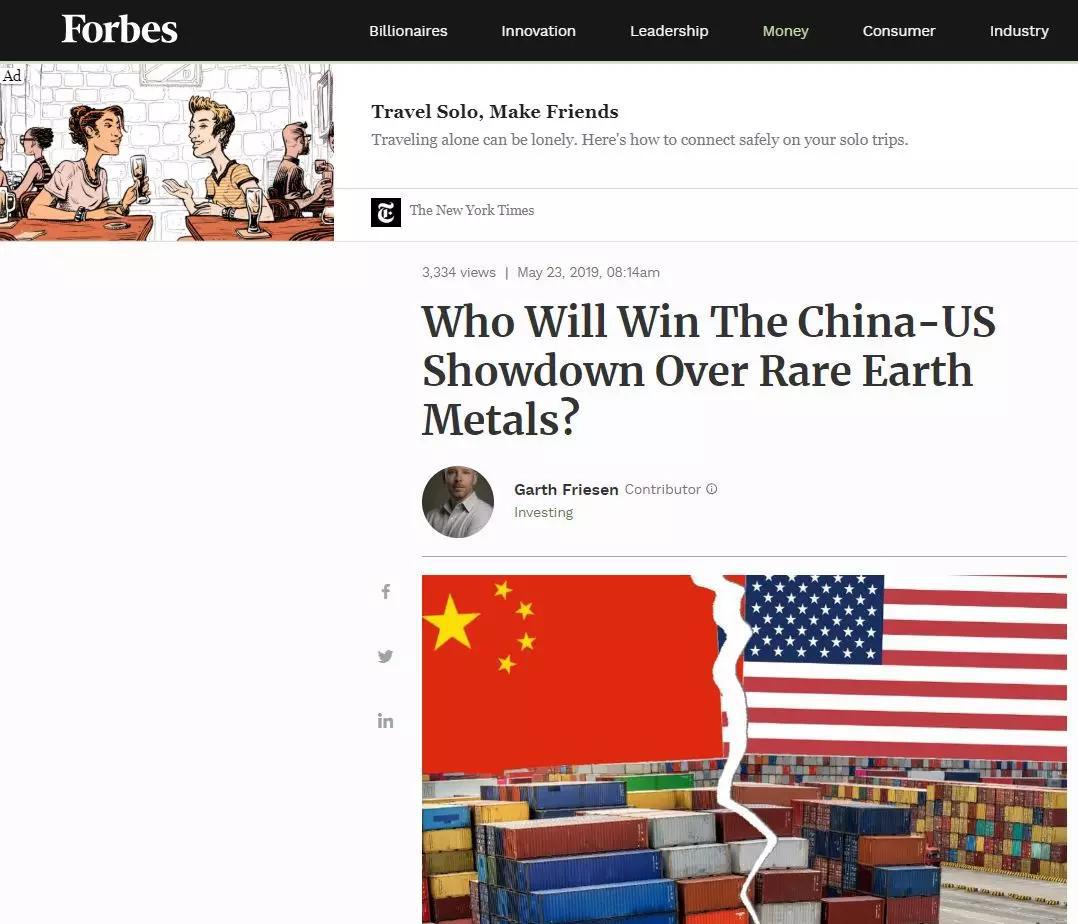 《福布斯》也比較“樂觀”。在題為《中美稀土攤牌誰會贏》的文章中,作者并沒有提及中國在稀土制造中技術(shù)領(lǐng)先于美國,而是把美國稀土產(chǎn)業(yè)落后,歸因于美國“不愿意”做。