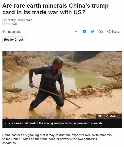 BBC上面這篇文章的標題很有趣,一語雙關(guān):《稀土是中國與美國貿(mào)易戰(zhàn)的“王牌”嗎》。(英文中trump原意就是“王牌”)